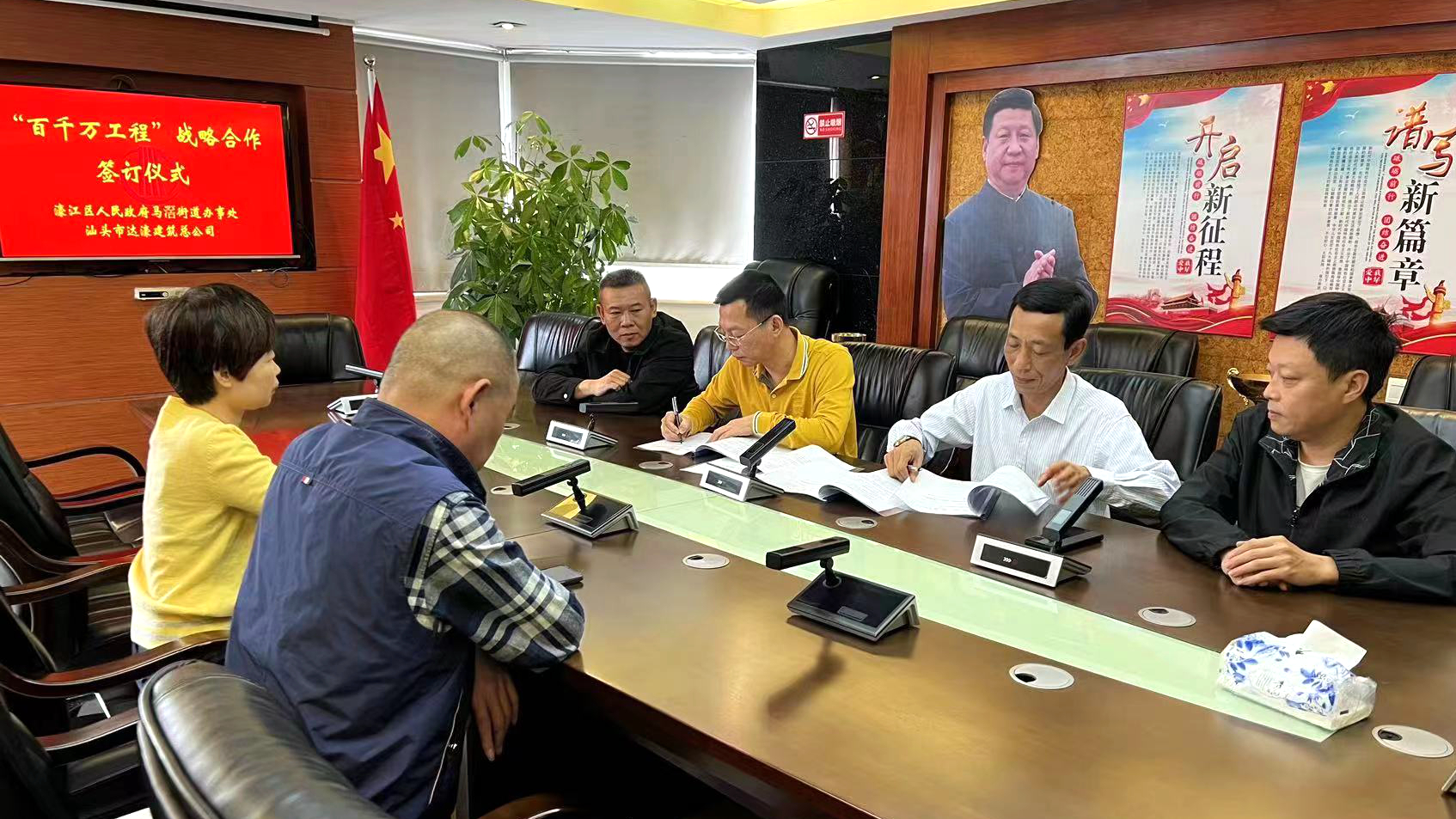 2023-09-189月15日,汕頭市達(dá)濠建筑總公司與濠江區(qū)馬滘街道在公司會(huì)議室舉行“百縣千鎮(zhèn)萬村高質(zhì)量發(fā)展工程”(以下簡稱“百千萬工程”)戰(zhàn)略合作框架協(xié)議簽約儀式。公司總經(jīng)理陳樹宏與馬滘街道辦事處主任黃開雄攜各自單位的主要負(fù)責(zé)人出席儀式。